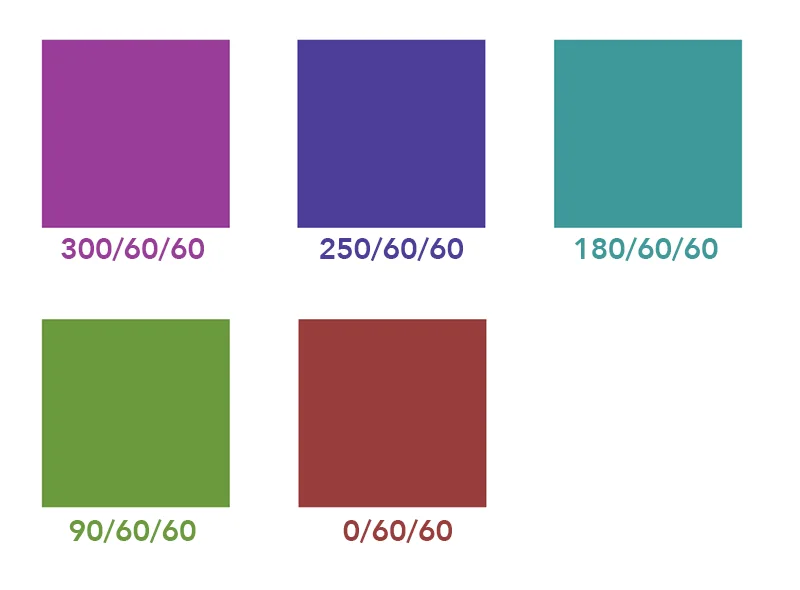 Col metodo Hsb è vergognosamente semplice creare una tavolozza (palette) di colori. Non occorrerebbe nemmeno comprendere il significato di armonia del colore o dilinguarci in spiegazioni sulla teoria del colore.