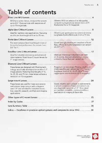 Progetto grafico e produzione Pdf ottimizzato per lo schermo e per la stampa del catalogo generale Lobre Srl. Organizzazione contenuti e coerenza grafica le sfide principali