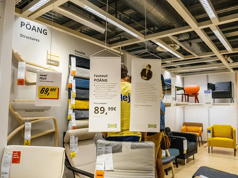 In Ikea come in altri negozi, la segnaletica digitale è sempre più presente e propone vantaggi evidenti rispetto alla “segnaletica statica”.